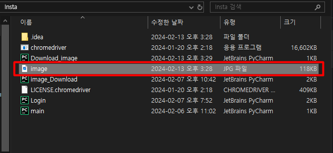 몇 초의 시간 뒤, 파이썬 프로젝트 폴더 내에 이미지 파일이 생성된다.
