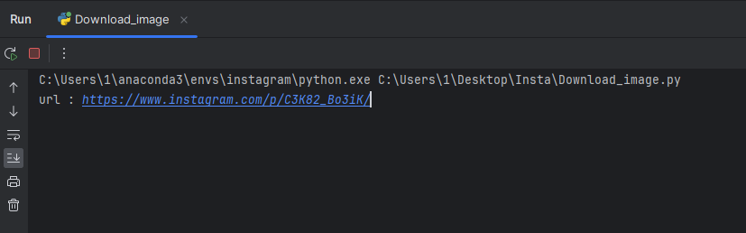 위에서 기재해 놓은 코드를 컴파일 한 뒤, 콘솔창에 복사한 게시물 주소를 붙여 넣은 뒤 엔터를 누른다.