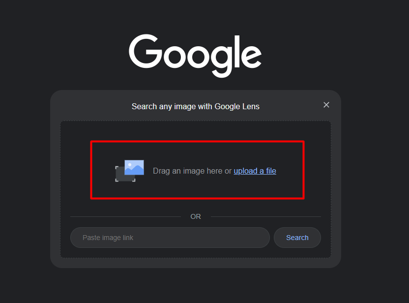빨간색 네모영역에 이미지를 끌어다 놓거나, upload a file을 클릭하여 직접 이미지를 업로드하면 된다.