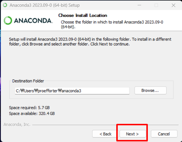 또한, 아나콘다의 설치용량은 5.7 GB로 비교적 꽤 큰 편이니 저장공간도 고려할 필요가 있습니다.