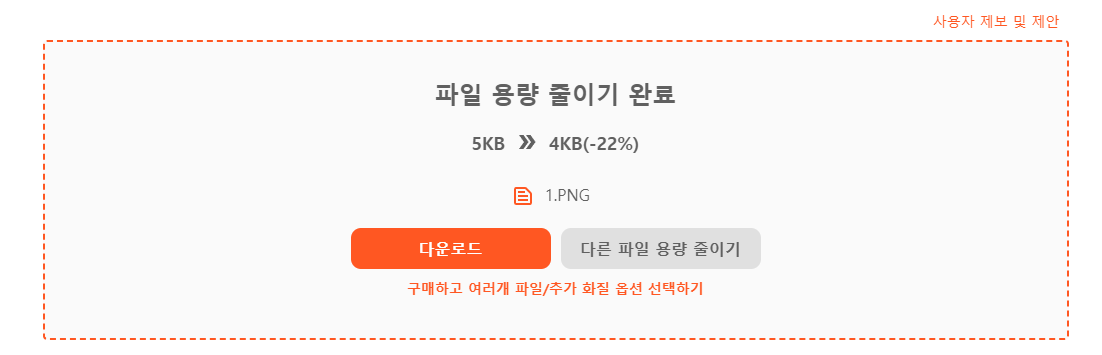 필자는 5kb의 예시 이미지를 업로드해서 High퀄리티를 선택하여 용량을 압축해 보았다.