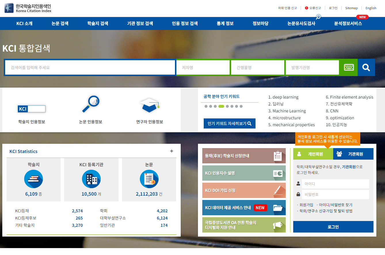 등재된 논문을 볼 수 있는 플랫폼, KCI